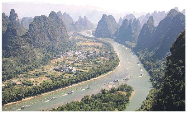 近年来,农行桂林分行通过发放信贷资金支持桂林旅游龙头企业进行游船、酒店等旅游设施升级、旅游交通提质等,持续改善旅游环境和体验,支持打造桂林世界级旅游城市,提升旅游品位,吸引海内外游客。图为国庆期间漓江上百舸争流。