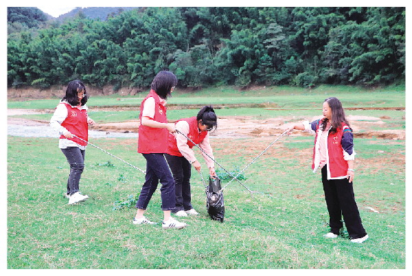 10月22日,灵川兰田瑶族乡和灵川总工会的党员代表在捡拾垃圾。当日,他们来到兰田瑶族乡“一棵树”草坪,开展“守护绿水青山 共建生态家园”主题党日活动,以实际行动保护漓江上游的环境卫生。叶金玉 黄鑫 摄