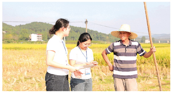 阵阵秋风,吹起稻谷芳香。全州县纪委监委把监督“探头”架设到基层一线,围绕乡村振兴、惠民政策落实等情况,深入群众当中察民情、听民意,以精准监督推动解决群众急难愁盼。图为该县纪检监察干部在文桥镇的田间地头向农户了解种植和粮食补贴相关情况。 赖依枫 摄