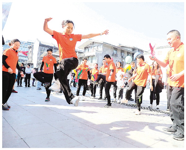 参赛选手在“毽步如飞”项目比赛中。