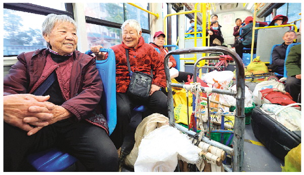 10月28日,菜农搭乘湖北省襄阳市505路公交车“爱心菜农专线”。