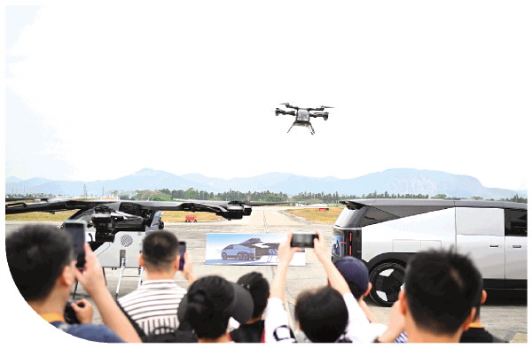 在中国航展第二展区,小鹏汇天飞行汽车“陆地航母”进行飞行演示(11月10日摄)。 新华社记者邓华 摄