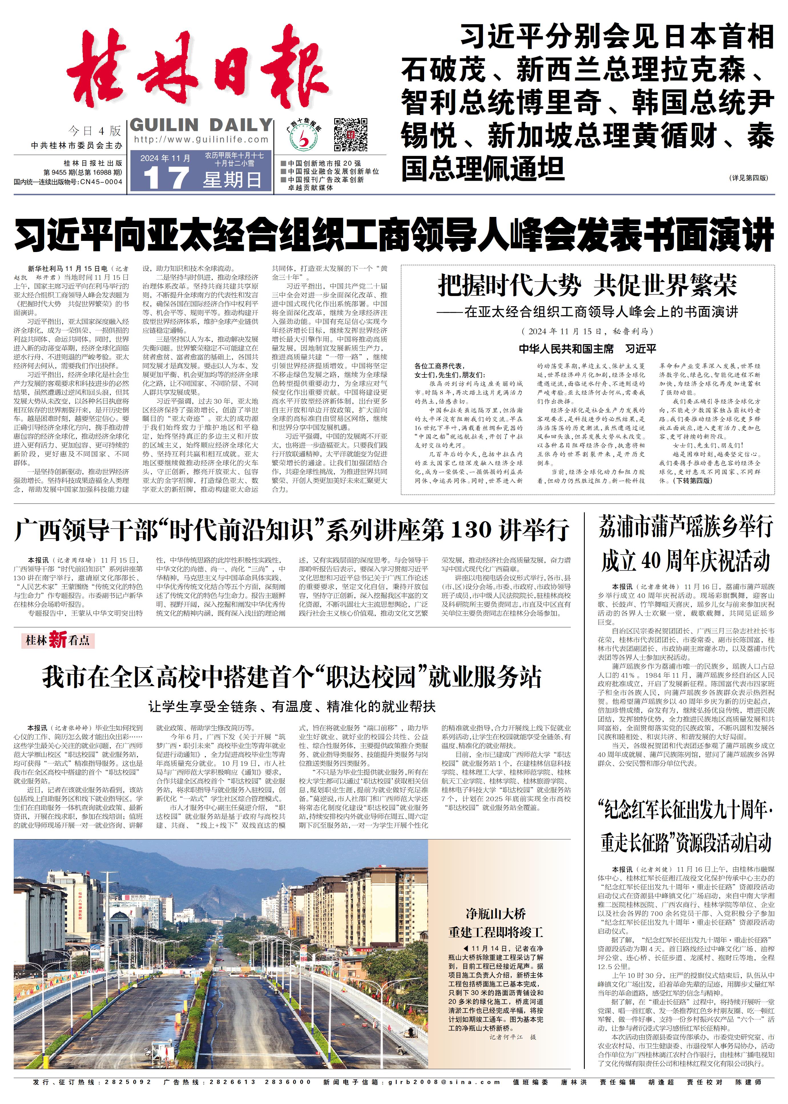 习近平分别会见日本首相石破茂、新西兰总理拉克森、智利总统博里奇、韩国总统尹锡悦、新加坡总理黄循财、泰国总理佩通坦