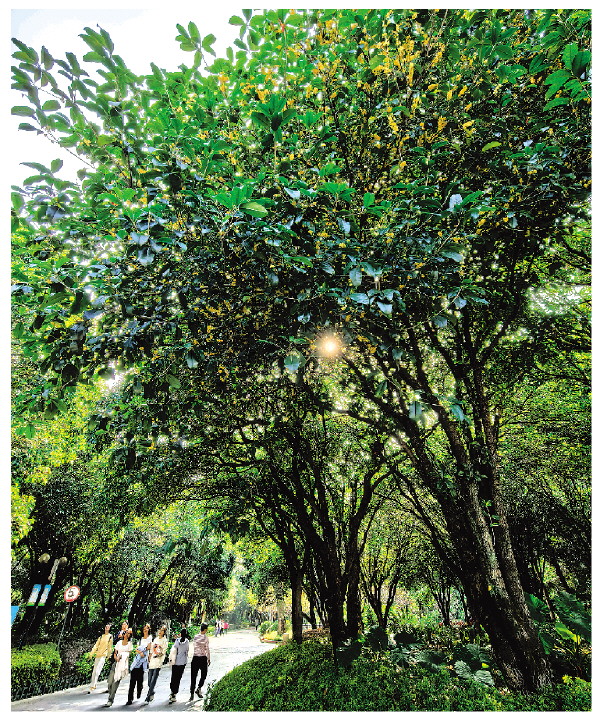 桂林园林植物园高大壮硕、枝头满是桂花的桂花园。 记者刘毅 摄