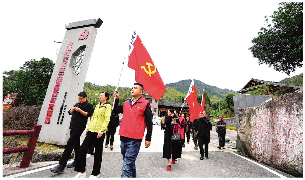 队伍从两水苗族乡塘洞红军长征文化廉政教育基地出发。