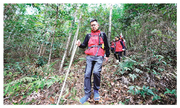 不过,穿梭在森林中,清新的空气和阵阵鸟鸣声让人陶醉。由于路窄,队伍里有老人,队员们自发保护、牵拉着老人,虽然延缓了行路速度,但又何妨,这份温情正是宝贵的人间风景。