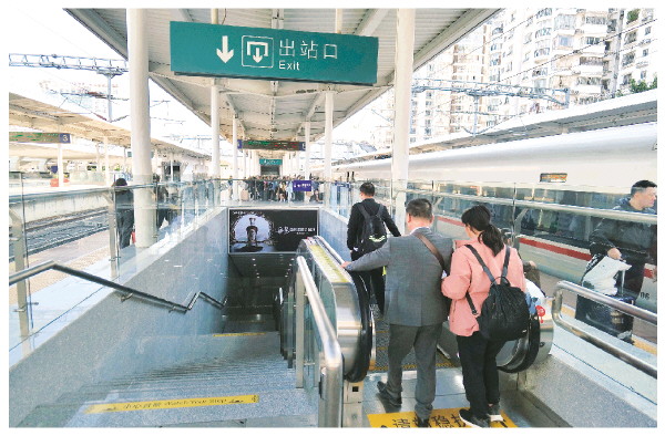▲旅客到桂林站下车可乘坐新安装的出站扶手电梯。 记者苏展 摄