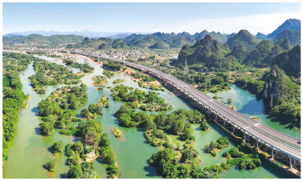 前不久正式通车的灌平高速跨越了茶江的一段江面,恰好此处江内有上百个大大小小的沙洲。在阳光照耀下,江面碧波涟漪,沙洲百态千姿,高速路宛如穿越了千岛湖。