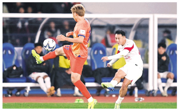 ▲11月23日,上海海港队球员冯劲(右)在比赛中传球。