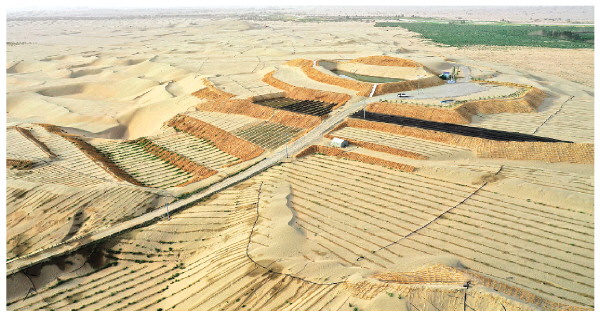 今年以来,新疆把补齐285公里“缺口”作为塔克拉玛干沙漠边缘阻击战的重点,因地制宜、分类施策,综合采用工程固沙、生物治沙、光伏治沙等科学治沙技术,在固沙阻沙的同时,大力发展具有地方特色的沙产业,助力惠民富民。