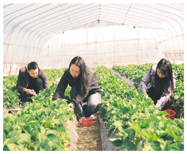 ▲不少游客到定江镇粟家村的草莓园享受休闲采摘的快乐时光。 王道梅 摄