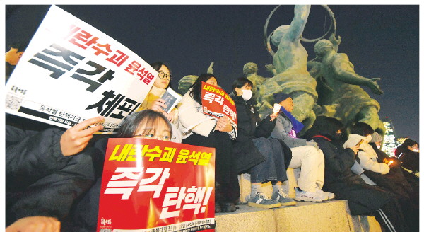 12月4日,人们在韩国首尔举行集会,要求总统尹锡悦下台。 新华社发
