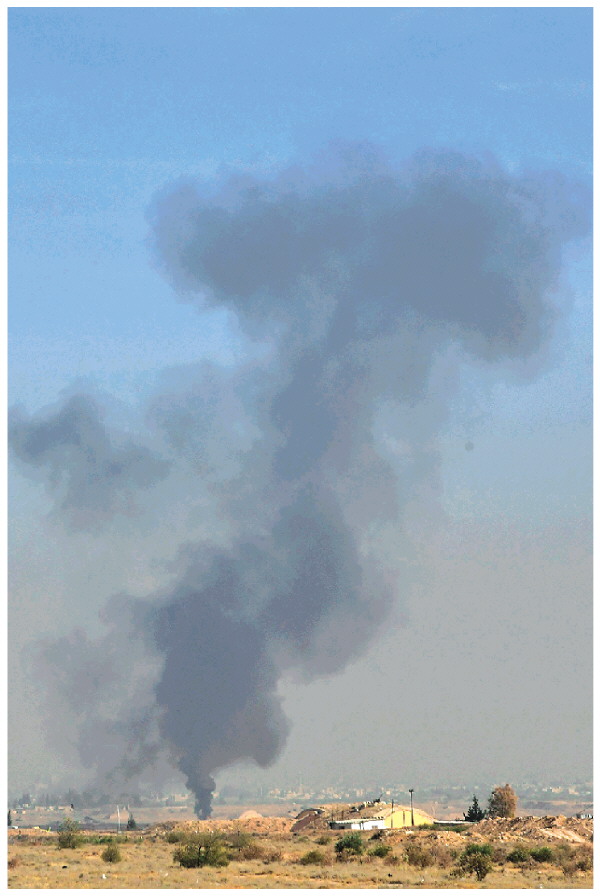 12月9日,在叙利亚大马士革迈宰,一处军事基地因以军空袭而冒出浓烟。