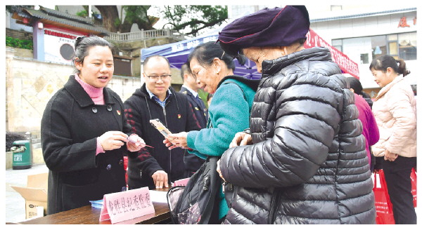 龙胜县纪委监委工作人员向现场群众宣讲纪法知识的同时,广泛收集基层党风政风问题及群众诉求。