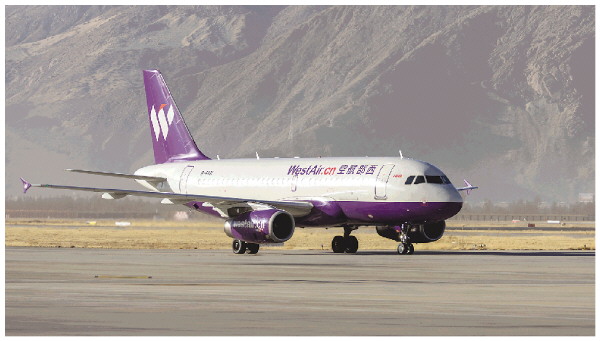 12月25日,执飞拉萨—重庆—新加坡国际新航线首飞任务的西部航空PN6425客运航班在拉萨贡嘎国际机场滑行。