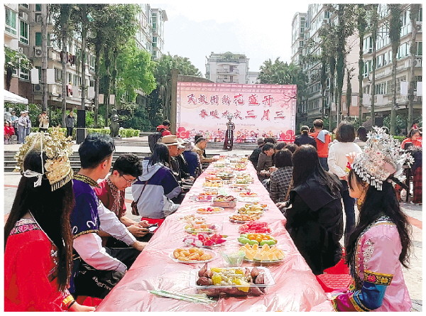 2024年4月9日上午,东江街道辰山社区开展2024年“民族团结花盛开 春暖欢庆三月三”文艺展演暨民族美食节活动。