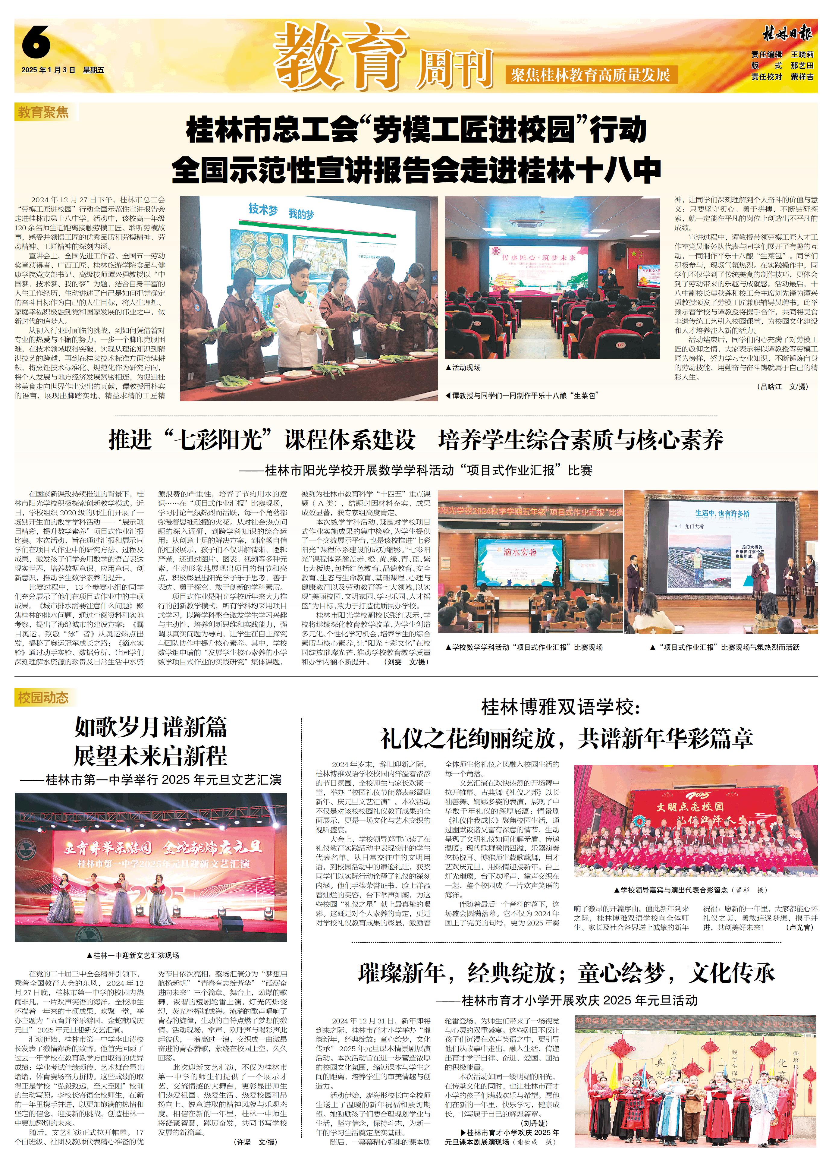 2024年12月27日下午,桂林市总工会“劳模工匠进校园”行动全国示范性宣讲报告会走进桂林市第十八中学。活动中,该校高一年级120余名师生近距离接触劳模工匠、聆听劳模故事,感受并领悟工匠的优秀品质和劳模精神、劳动精神、工匠精神的深刻内涵。