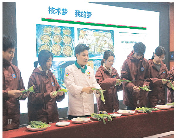 谭教授与同学们一同制作平乐十八酿“生菜包”