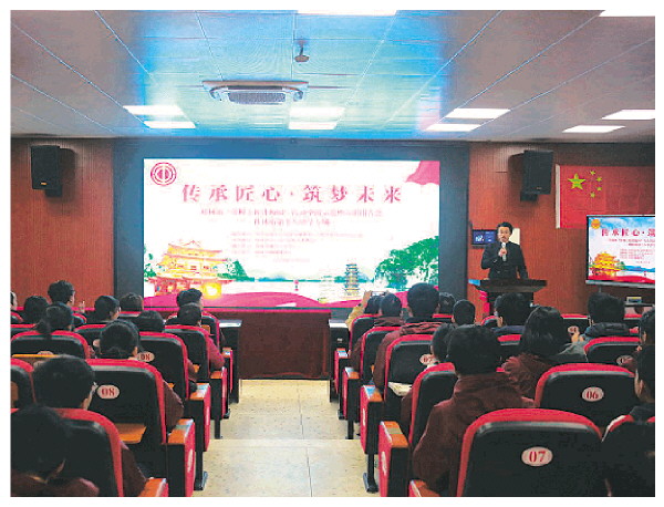 宣讲会上,全国先进工作者、全国五一劳动奖章获得者、广西工匠、桂林旅游学院食品与健康学院党支部书记、高级技师谭兴勇教授以“中国梦、技术梦、我的梦”为题,结合自身丰富的人生工作经历,生动讲述了自己是如何把党确定的奋斗目标作为自己的人生目标,将人生理想、家庭幸福积极融到党和国家发展的伟业之中,做新时代的追梦人。