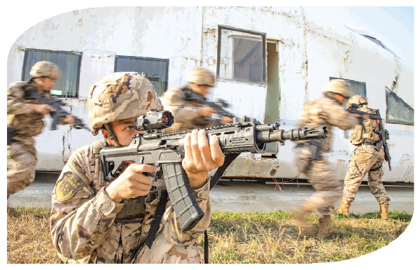 “发现目标,请求歼灭!”对抗演练现场,特情频出。队员在抵近侦察过程中发现“暴恐分子”,指挥员果断下令,全体队员密切协作将“暴恐分子”全部“击毙”。走下演练场,参训队员感慨:“对手强,我们要更强。”