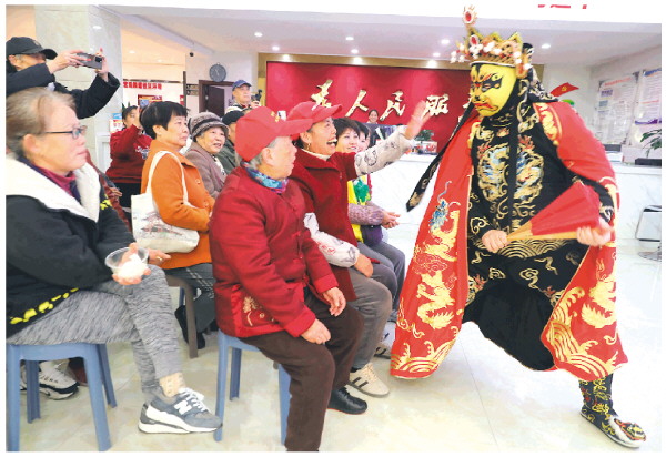 图为节目《变脸》的演员与居民们近距离互动。 记者陈静 摄