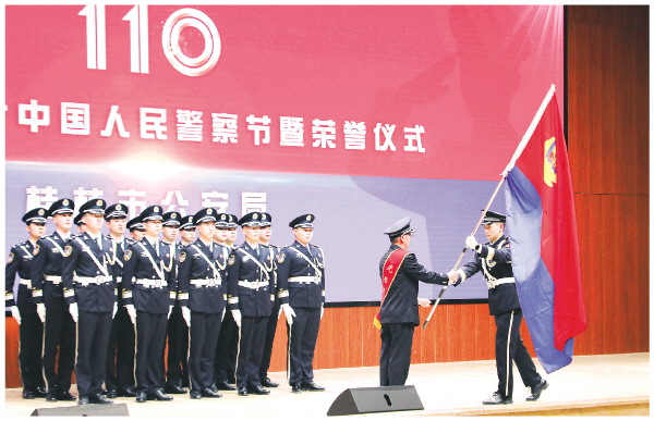 ◤为庆祝2025年中国人民警察节,进一步凝聚警心、鼓舞士气、激励奋进,充分展现新时代公安队伍忠诚履职、担当奉献的良好精神风貌,1月10日,桂林市公安局举办第五个中国人民警察节系列庆祝活动。图为活动中,即将退休的老民警和刚入职的新警,通过传递象征着责任与使命的警旗,续写薪火相传的光荣传统。