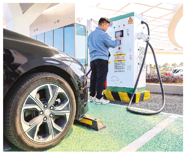 1月13日,一名司机在沈海高速佛开段址山新能源服务区给汽车充电。