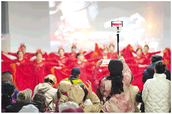 民间文艺团体在南站市场上演“新春音乐会”。记者韦莎妮娜 摄