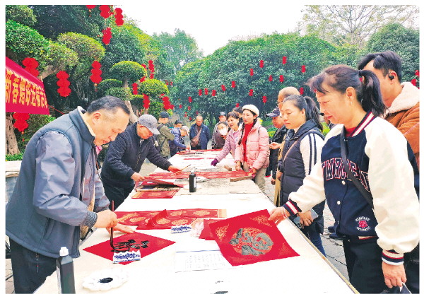 本报讯(记者徐莹波 文/摄)1月24日,桂林园林植物园举行2025年迎新春赠联送“福”活动,活动主题为“笔墨飘香迎新春”。在活动中,公园邀请了4位书法家现场免费为市民写春联和福字,为大家送上蛇年祝福。