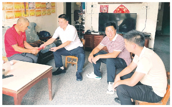 兴安镇党委副书记、镇长周勇(左二)慰问困难党员。