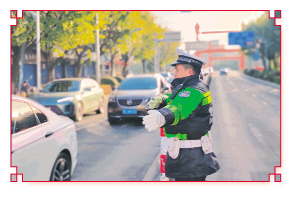 春节假期,桂林交警在路口指挥交通。(市公安局供图)