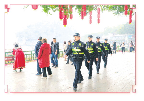 春节假期,桂林公安守护平安“不打烊”,全市各级公安机关的民警辅警维护秩序、疏堵保畅、服务群众,确保市民、游客度过一个欢乐、祥和、平安的假期。