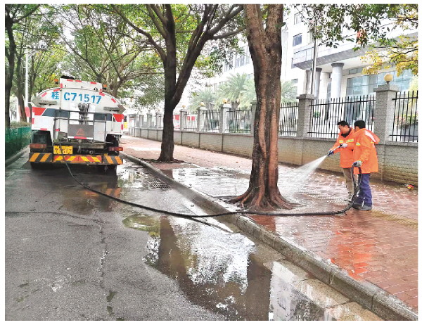 记者了解到,春节期间,在叠彩环卫负责区域,4台洒水车、4辆大型洗扫车、4台洗地车、5台冲洗车、3台路面养护车像一支训练有素的战队,有条不紊地在各条道路上穿梭,对每一条道路、每一个路段进行全覆盖无死角的清洗和保洁。