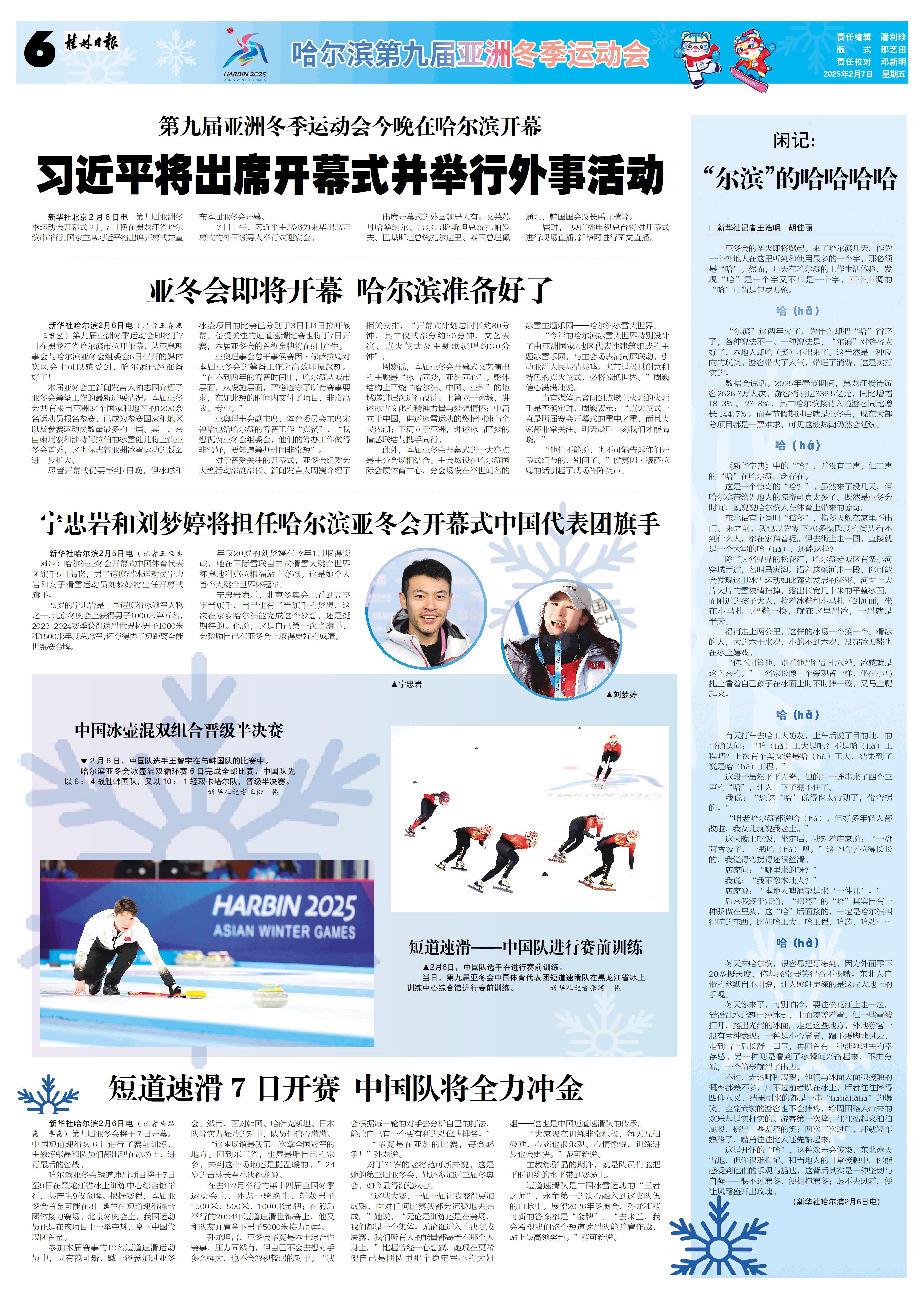 宁忠岩和刘梦婷将担任哈尔滨亚冬会开幕式中国代表团旗手