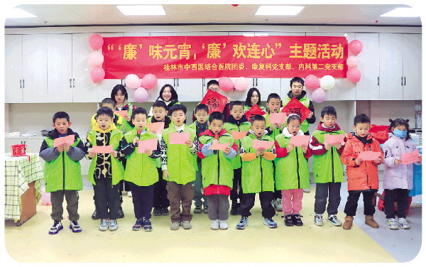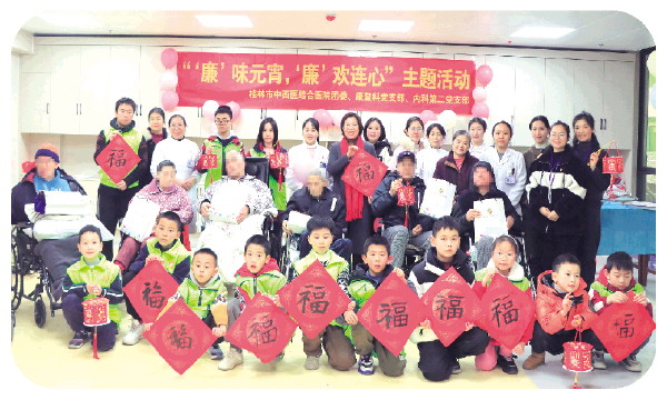 □本报记者刘菁 通讯员赵婷婷 文红 正月十五闹元宵,团团圆圆幸福年。 桂林市中西医结合医院始终将患者放在心间,为了让住院的患者感受到家的温暖,医院精心策划活动,用关怀缓解患者焦虑,用真诚构建和谐医患关系。 2月8日,该医院团委联合康复科党支部、内科第二党支部开展“‘廉’味元宵,‘廉’欢连心”主题活动,联动群众、患者、医护人员及职工子女志愿者欢聚一堂,共同迎接元宵佳节。 活动伊始,医院党委委员、副院长陆雪萍为活动作了简短的开幕致辞,并送上了元宵节的祝福。随后,她带领医院团委、康复科医护人员及小小志愿者们一起走进病房,为住院患者及家属们送去慰问品和温暖的节日祝福。陆雪萍鼓励患者要树立自信心,祝他们早日康复。这一举动让每一位住院患者真切感受到了家一般的温暖,在寒冷的季节感受到了春天般的温暖。 当天的第二项活动,是由康复科主任唐永秀带领“医二代”的萌娃们了解医院的中医文化。萌娃们不仅参观了医院中药壮瑶药植物科普园、中草药标本展示墙和国医堂,还亲手体验制作艾条。通过实地参观和讲解,萌娃们对中医的博大精深,有了更深入的了解,也对医院的中西医特色文化有了更直观的认识。这项活动不仅让孩子们增长了知识,也为医院的中医文化传承注入了新的活力。 随后,萌娃们又变成小小志愿者,与自己的医生护士爸爸妈妈共同为住院的患者长辈们制作手工灯笼、包饺子汤圆和书写祝福。萌娃们的手虽小,但制作出的手工艺品却栩栩如生。在大家的共同努力下,一件件精美的手工艺品呈现在大家眼前,让病患们赞叹不已。萌娃们将自己书写的福字赠送给病患,将亲手包的饺子和汤圆煮熟端送至长辈手中。孩子们的一举一动,打动了在场的每一位患者。 为了让活动更加丰富多彩,萌娃们还表演了一系列节目。小萌娃们合诵《爱莲说》:“出淤泥而不染,濯清涟而不妖,中通外直……”孩子们稚嫩的声音铿锵有力,在活动室萦绕回响。接着又合唱了令人感动的《半生雪》:“中华五千年,多少英雄浮现……努力学文化,长大建设大中华,勇往直前,自信的创造明天。” 80多岁的李大爷是一名老党员,他被孩子们的表演感动,流下了幸福的泪水。“感谢医院为我们这些行动不便的患者举办这次活动,让我们感受到了家的温暖,你们真诚的服务和举动,让我们很欣慰、很踏实、很感动,为你们所有人点赞,为医院点赞。” 一份汤圆,一句祝福,承载着医院“病人至上,医患满意”的服务理念。通过这次活动,医院用真心换真情,让住院患者在医院也能感受到家一般的温暖以及医护人员如家人般的体贴关爱。活动不仅拉近了医患之间的距离,提升了患者的就医体验,也增加了患者的幸福感和获得感。 (图片由桂林市中西医结合医院提供)