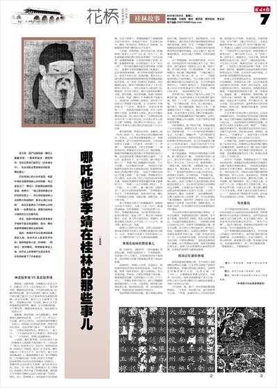张鸣凤提到的摩崖石刻,至今尚存于灵剑溪畔的普陀山北麓,以文字形式铭刻了桂林对李靖的敬意。李靖在唐末被日渐神化,后唐明宗特赐李靖为太保。后晋天福二年(937),石敬瑭追封李靖为灵显王。宋绍圣二年(1095),桂林灵剑溪畔建了李卫公庙,宣和六年(1124)周元辅在卫公庙附近的崖壁上书刻了此件纪念石刻。