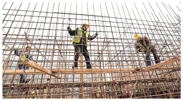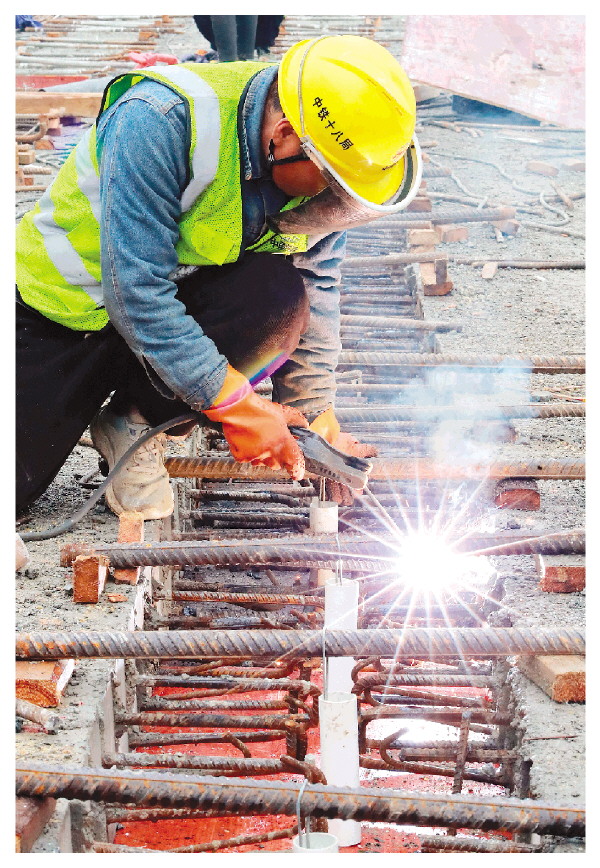 2月25日,记者在施工现场看到,尽管细雨纷飞,但工人施工热情高涨。