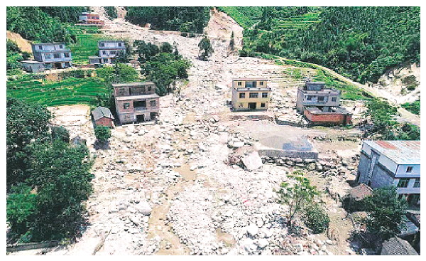 “小溪变成了洪流,风雨桥倒了,好多房屋倒了……”蒋振华说,洪水裹着石头和泥浆、树木,穿村而过,看得人心惊胆战。山洪下来时,大多数村民正在吃午饭,发现情况危急,大家慌忙往村内地势较高、未被洪水侵袭的村民家里跑。