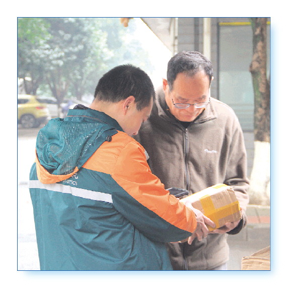 杨明科使用智能设备为市民签收快递。