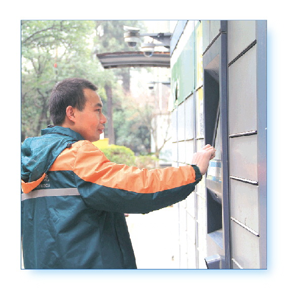 杨明科帮市民将包裹寄存到小区的快递柜中。