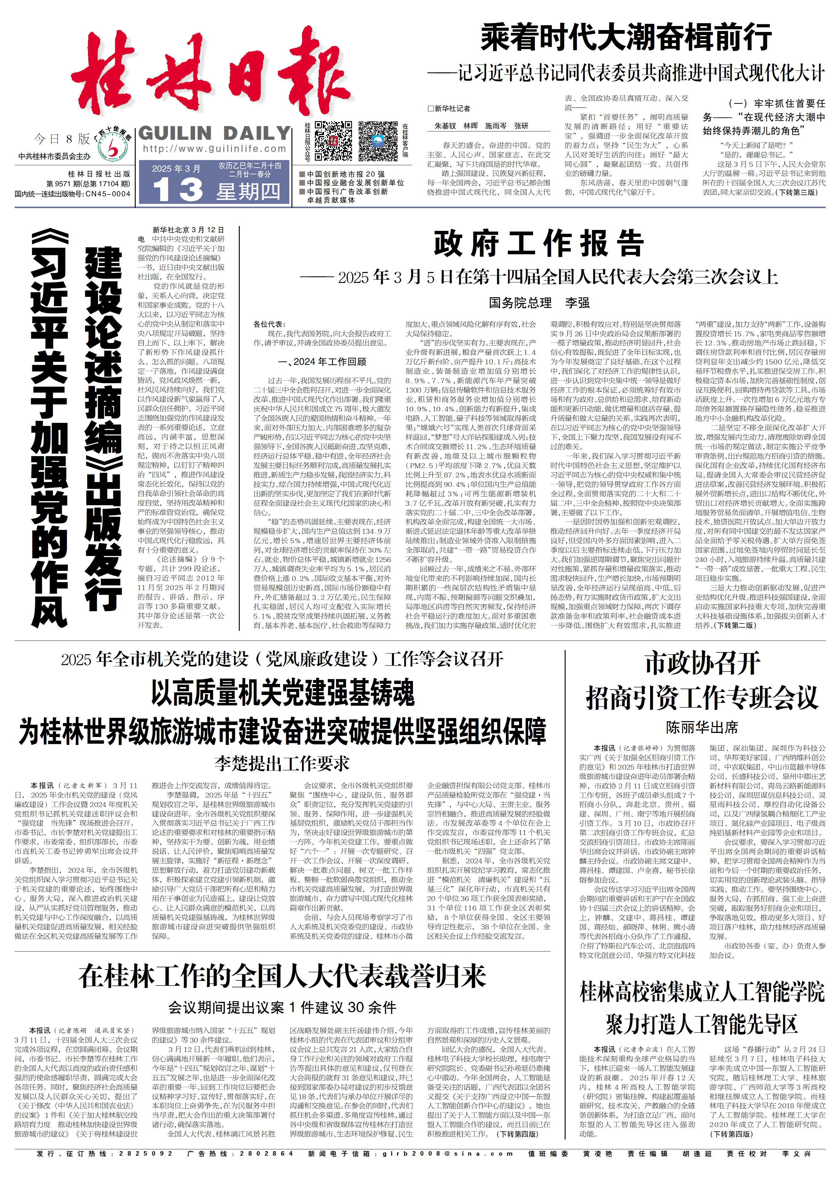 会议要求,要深入学习贯彻习近平出席全国两会期间的重要讲话精神,把学习贯彻全国两会精神作为当前和今后一个时期的重要政治任务,切实用党的创新理论武装头脑、指导实践、推动工作。要坚持围绕中心、服务大局,在抓招商、强工业上奋进突破,跟踪服务好招商企业和项目,争取落地见效,推动更多大项目、好项目落户桂林,助力桂林经济高质量发展。
