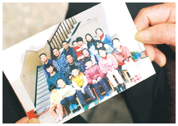 ◤老人拿出珍藏的一家人合影。