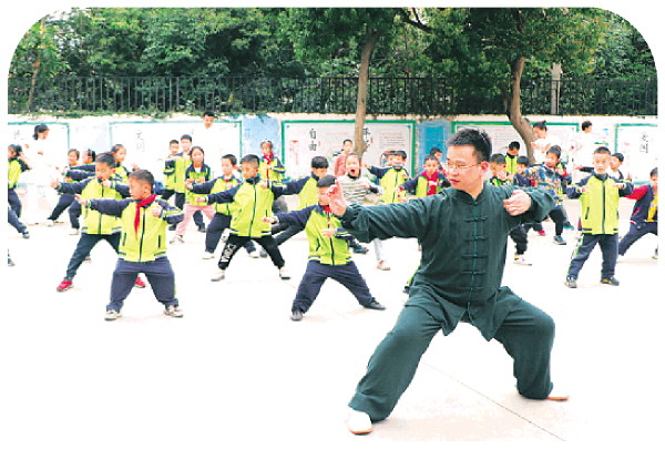 带领学生体验八段锦。
