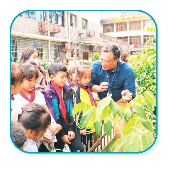 带领小学生参观中药壮瑶药科普植物园。