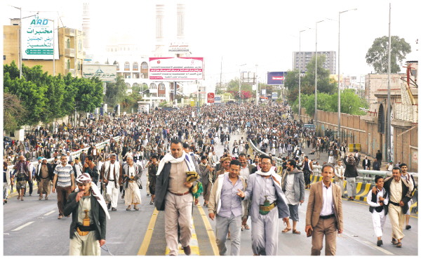 数万民众17日在也门胡塞武装控制的首都萨那举行大规模集会,抗议美军对也门境内胡塞武装目标进行空袭。