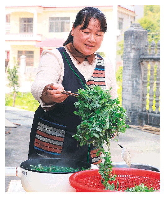 □本报记者秦丽云 李忠波 刘菁 通讯员黄勇丹 郑素萍 文/摄 什么样的美食,能一口咬出春天滋味?什么样的美食,会成为人们春日“新宠”?在灵川县灵田镇会林村委水埠村的村民黄朝燕看来,答案必然是青团。 和煦的春风,让田野里热闹起来了。一棵棵嫩嫩的艾草,欢欢喜喜地长满了田间、地头、路边和山坡。春季食鲜,青团是必选。而制作青团的首选食材,正是艾草。 3月21日上午,“80后”黄朝燕和村里“60后”长辈秦桂英挎着篮子出了门。头一天,两人就约好,要一起采摘艾草做青团。 村头的一片林子里,艾草长得最为鲜嫩。黄朝燕二人麻利地采摘着每一株艾草最尖端的嫩芽,很快就装满了一大篮子。在村子一棵大古树下的小溪旁,两人就着清清的山泉水,把艾叶清洗干净。 勤劳又能干的黄朝燕,是村里有名的美食家。这些年来,清明前后采摘艾叶,制作青团,已成了她的春季工作“标配”。“新鲜采摘的艾叶,尽量把梗部去掉一些,避免口感粗糙;艾叶放入开水里焯烫去除苦味之前,记得往水里加一点碱粉,保护艾叶本身的青绿色;而在水开时要放一勺猪油,能达到提香的作用……”关于制作青团的心得,她早就积攒了一大堆。 焯烫完毕的艾叶,被立马放入一大锅冷水中冷却。接着,黄朝燕把冷却后的艾叶和着一些清水,全部倒入破壁机。机器转动,两分钟的工夫,艾叶变为了绿油油的艾叶汁。 在黄朝燕忙碌的同时,秦桂英阿姨也一直在忙着准备馅料。当日早上挖回来的春笋,被切成了小笋丁;肥瘦相间的五花肉,被切成了肉末;菜园里刚采摘的蒜苗,还有刚腌制好的酸白菜,都被切细,备用。此外,一块散发着豆香的水豆腐,还有几两小河虾干,也均被摆上桌子备用。众多食材准备妥当,开始翻炒。先是把五花肉末煎得油香四溢,再把小笋丁倒入翻炒,接着是放入油炸过的小河虾。当肉、笋和小河虾均在锅中享受油炸、翻炒的快意时,黄朝燕把水豆腐用手一捏,拌入锅中。很快,豆腐碎开始痛快地吸收锅中的油汁,让整锅馅料不再如先前那般油腻。在翻炒的过程中,盐、辣椒粉、生抽等依次放入,满屋飘香。在出锅前,蒜苗倒入,馅料就此翻炒完毕。 在等待馅料冷却的过程中,黄朝燕二人合力揉搓粉团。数斤糯米粉倒入大盆中,浓郁的艾叶汁缓缓倒入糯米粉中。随着揉搓的进行,糯米粉由白色变为浅绿,再变为绿色,甚是好看。 揉好的糯米粉团,被细分出大小均匀的小粉团。小粉团在巧手们的揉捏下,形成一个窝状,再填入香喷喷的馅料,然后被捏紧、收口,安放在了一片柚子叶上。待柚子叶铺满蒸锅,意味着可以开始蒸青团了。 黄朝燕告诉记者,一般是冷水开蒸比较容易把握火候。蒸青团,大火蒸15分钟左右最佳,如果时间过短,青团未熟;过久,青团就容易变形,甚至露馅。 精准把握火候的人,在开蒸后第15分钟掀开了蒸锅。一个个绿油油又圆润可爱的青团就呈现在记者眼前。那种充满活力的绿色,叫人觉得春天的绿意都集中到这个小团子上了。而它们散发出的那种朴素的香气,让人心旷神怡的同时又分外安心。顾不得青团还有些烫嘴,记者轻轻咬了一口,其外皮绵柔细腻,内馅滋味浓郁、香味醇厚。如果说,笋是山的味道,虾是海的味道,艾叶则是大地的味道。当大地的味道把山的味道和海的味道包裹,就成了春日特别的鲜味。 为了满足家人和亲友的不同口味,黄朝燕还专门用芝麻、花生、黄糖和蜜糖配制了甜馅料,制作甜味青团。小小青团,包裹春日芬芳,满载着春之温暖。 据了解,青团起源于唐代,至今已有千余年历史。袁枚的《随园食单》中有关于青团的记载:“捣青草为汁,和粉作团,色如碧玉。”寥寥十数字,却道出青团青色的奥义。 其实,青团不仅是一道时令美食,更承载着丰富的文化内涵。能做青团了,意味着春天到来、万物复苏。在清明节,桂林人常常带着青团祭祀祖先,表达对已故亲人的一份哀思和纪念。 暖暖春日,熟悉的青团味道悄然弥漫乡村的空气。青团带着春天的气息,承载着春之希望,抚慰了人们在春天那份向往新一年的小雀跃、小欢喜……