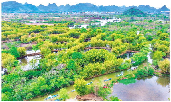 春回大地,万物复苏。近日,位于临桂区会仙镇的会仙湿地水满绿新,鸟儿蹁跹,处处一派生机勃勃的景象。