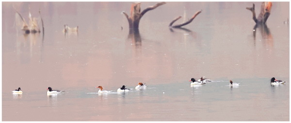 在青狮潭保护区越冬的中华秋沙鸭。 禹婷婷 摄