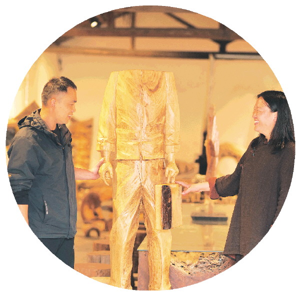 在此“蛰居”的十余年中,乔敏康和妻子创作了大量的木艺作品。他们做的第一件作品是应一位设计师的要求,复刻一个大型松树装置作品。“我记得当时运到青岛的运费要4800元。大家很喜欢我们的作品,与其说是客户,不如说是很多年的朋友,大家的友情从‘QQ’时代延续到了‘微信’时代。”郎伊玲说。