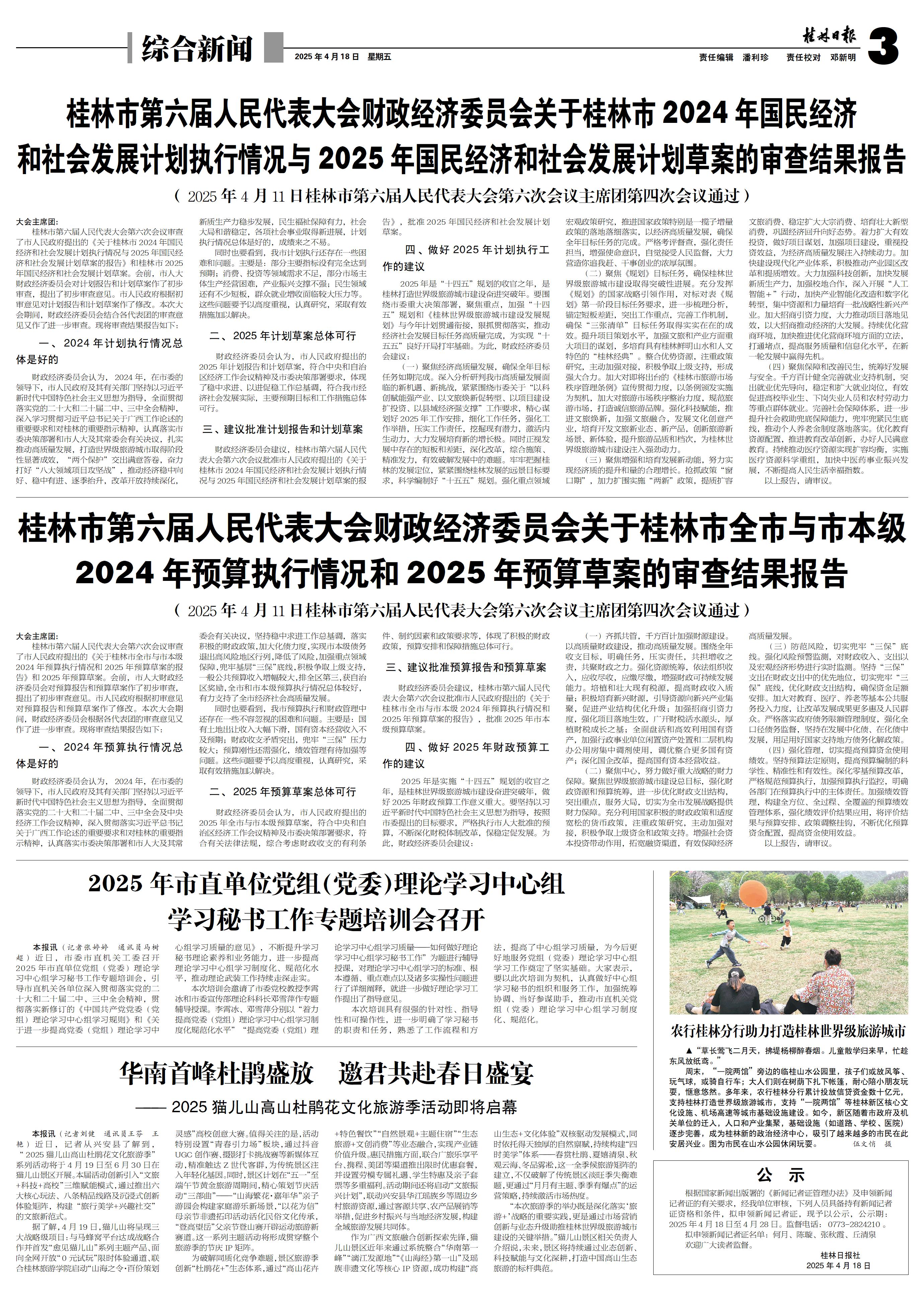 桂林市第六届人民代表大会财政经济委员会关于桂林市2024年国民经济